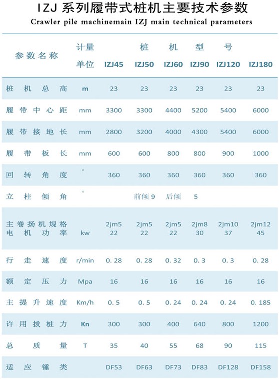 IZJ系列履帶式樁機采取電動履帶式設計,樁機前后有4個液壓支腿,具有行走穩(wěn)定快捷、對樁準確可靠、維修操作簡單等特點。可實現(xiàn)導桿式柴油錘、筒式柴油錘、振動錘、液壓錘、長螺旋鉆機等多種工作設備、多種工法的施工。